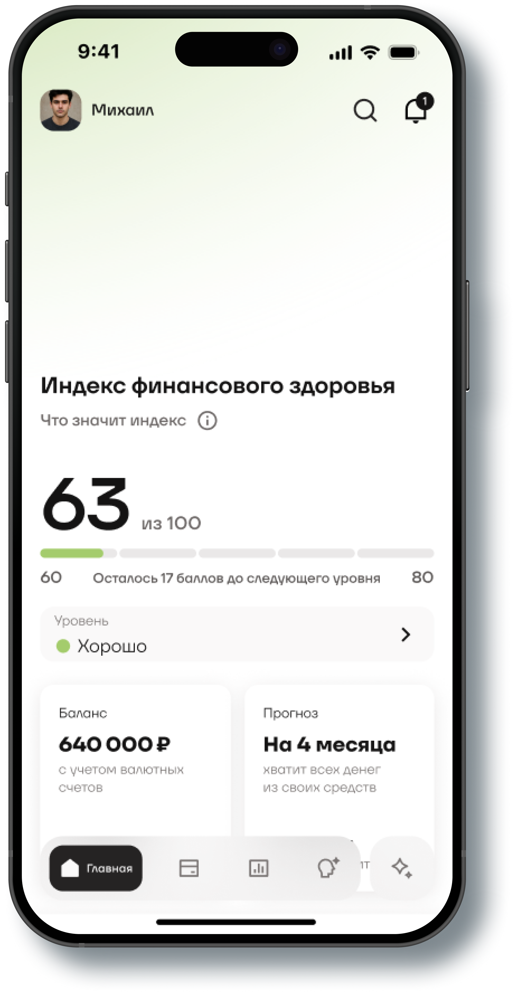 Приложение для персонального контроля финансов. Помогает формировать стратегии и цели, отслеживать прогресс. ИИ анализирует финансовые привычки и дает персональные рекомендации